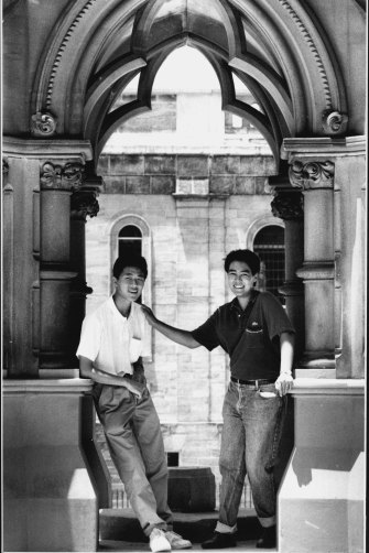 Marcus Lim, 17, right, and his best friend Hung Ta, 18, left, gained the top marks in the 1991 HSC, the Herald reported on January 13, 1992.Credit:Fairfax Media