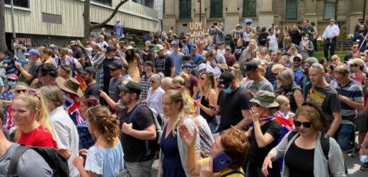 In the largest of the two rallies, over 1000 protesters marched down Bourke Street to Parliament House on Spring Street just after 12pm, with shouts of “free Victoria” and “Sack Dan Andrews”.