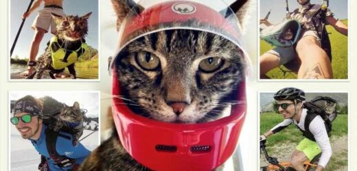 European shorthair Cathode loves joining her owner, adventure sports fan Rémy Vicarini, 31, on his escapades.