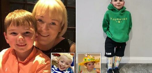 ‘Five months later he had his right leg amputated, and within days we were discharged home. He didn’t once ask about his legs, instead he started telling people a shark ate it.