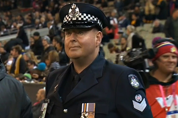 In a statement, Victoria Police confirmed the senior sergeant “has been suspended with pay pending an internal disciplinary hearing”.