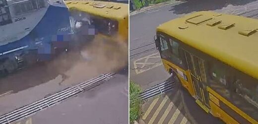 Terrifying moment train plows into Brazilian school bus with 25 students, killing two children aged 11 and 15, and injuring five students and one teacher
