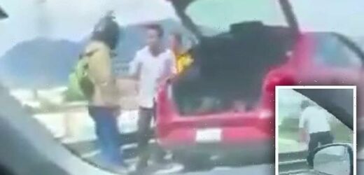 Sickening moment Uber Eats driver, 26, is thrown off a bridge by motorist in Mexico in shocking road rage attack: He survived the fall with a broken leg