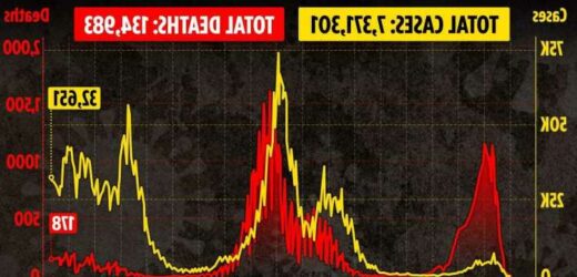 However, cases have dropped, with 32,651 recorded in the last 24 hours – compared to 37,622 this day last week.