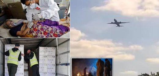 UK plane loaded with much-needed oxygen and other medical supplies takes off on mercy mission to India as the country’s health system collapses under tidal wave of Covid cases