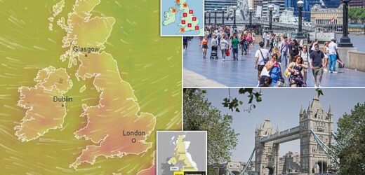Heat map reveals where Britain is basking in 28C sun today as revellers hit beauty spots and Met Office issues warning – but thunderstorms are set to put a dampener on the weekend