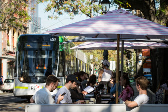 Melbourne’s hospitality scene reopened on Friday, with proof of full vaccination required to dine-in.Credit:Darrian Traynor/Getty Images