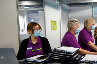The mass vaccination centre at Sunshine Hospital is now open for business.Credit:Penny Stephens / Western Health