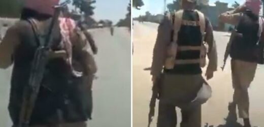 Another shows the fighters storming the streets on foot armed with guns, also thought to be stolen from the American army.