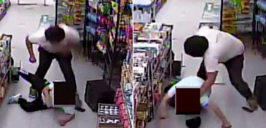The 43-year-old employee was inside Fayez Express Deli on Willis Avenue near East 146th Street in Mott Haven around 11:45 p.m. Monday when a man strolled in and initially walked past him — but then turned back and threw him to the floor, according to the clip released late Wednesday.