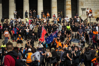 Protesters converged on the Shrine of Remembrance.Credit:Getty Image