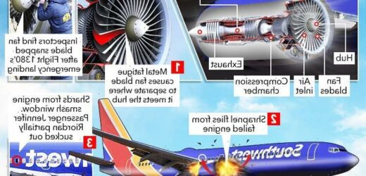 With Flight 1381, which never reached Dallas, the snapped blade most likely shot back through the engine's turbojet – which compresses and heats air to high temperatures – and took several chunks of the engine flying off with it.