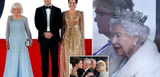 The Duke of Cambridge is ‘supportive’ of the Queen’s move to make his stepmother Queen consort. Prince William was not part of the decision-making process, the Daily Mail understands, but is ‘respectful’ of the logic of his grandmother’s decision. Above: The Duke and Duchess of Cambridge with the Duchess of Cornwall at the premiere of James Bond film No Time to Die in September last year
