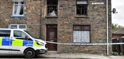 The 28-year-old woman was rescued after being trapped in the terraced property in Tonypandy, South Wales by the blaze.