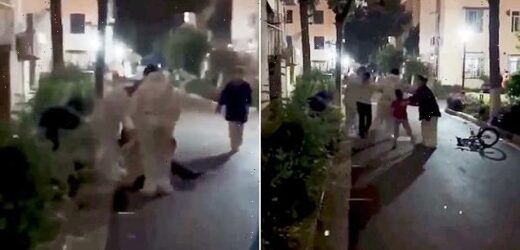 Woman is dragged away screaming from her home by Chinese officials in hazmat suits while her son tries to protect her as Covid lockdown intensifies