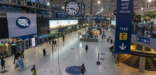 Unions are telling public sector workers they can now take 28 days off work without a sick note as a result of new Covid rules. Pictured: A deserted Waterloo Station at 8.15am Tuesday